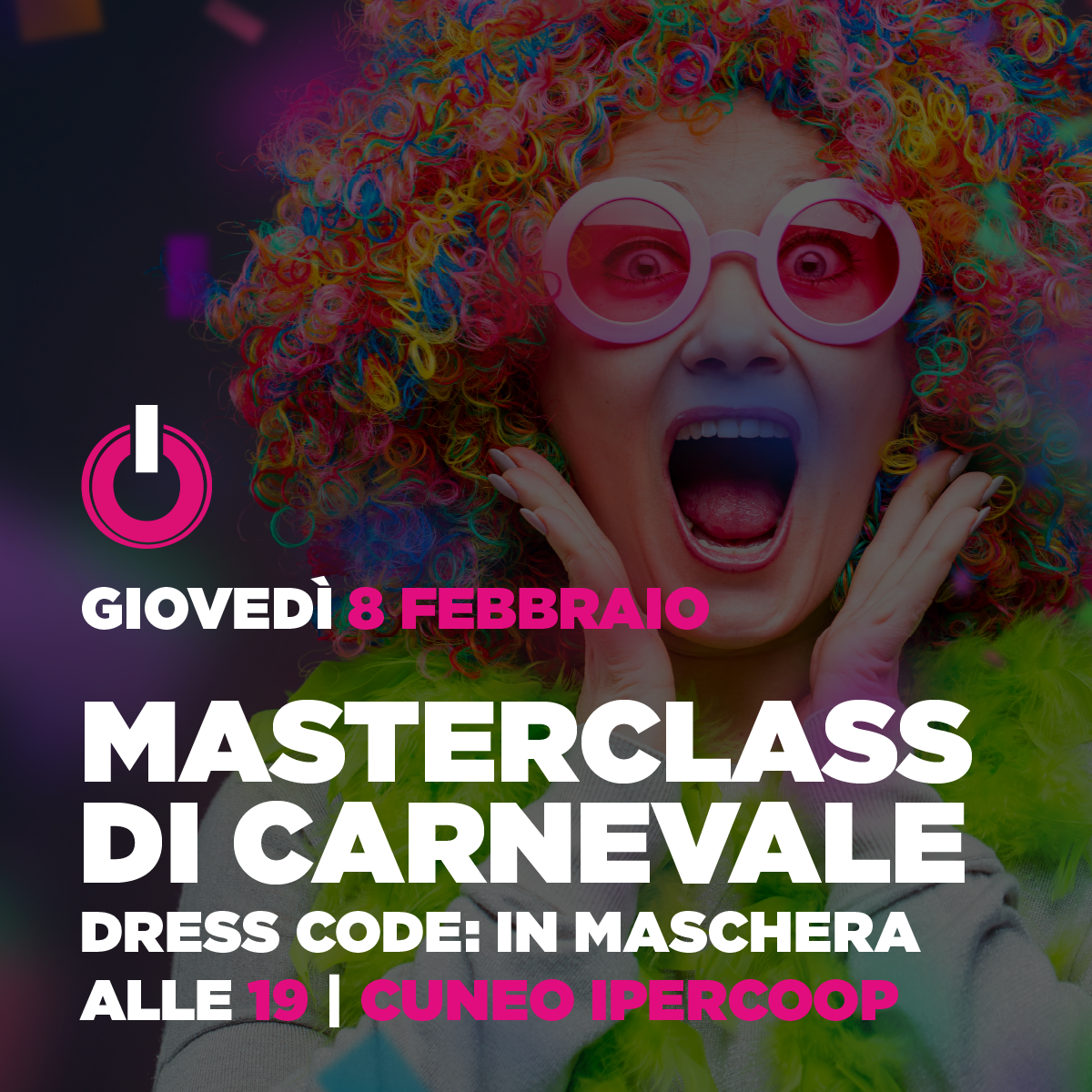 Masterclass di Carnevale Dress code: in maschera! Quando 8 Febbraio 2024 19:00 - 20:00 Posti disponibili: 1 su 30 Dove Cuneo – Ipercoop Via Cascina Colombaro, 33, Cuneo, CN, 12100 Attenzione! Le prenotazioni si aprono il venerdì precedente la settimana prenotabile e si chiudono un'ora prima del corso stesso. Prenotazioni Effettua l'accesso per prenotarti